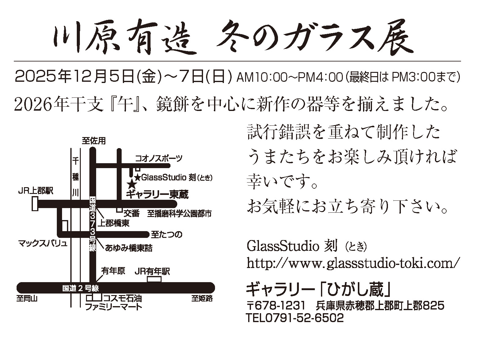12月5日(金)~7日(日)ガラス工房 「刻」展示会