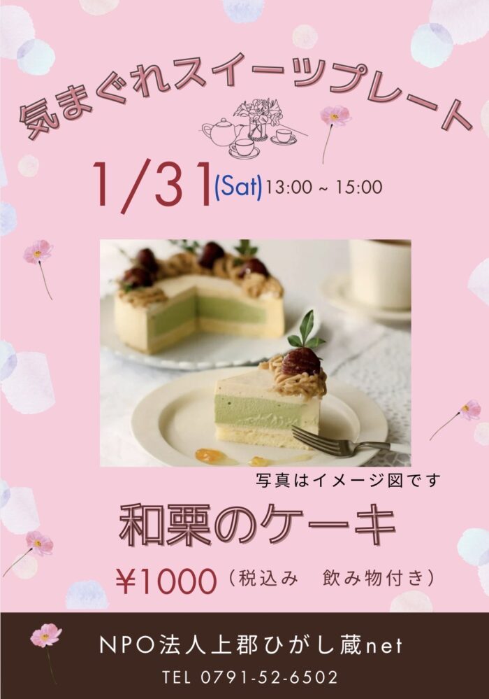 2026年1月1日 / 最終更新日時 : 2026年1月18日 webmaster イベント 1月31日(土)13:00~15:00 気まぐれスイーツプレート 15日から予約開始します。先着20名ですので早めに申し込みくださいませ。 よろしくお願いいたします。